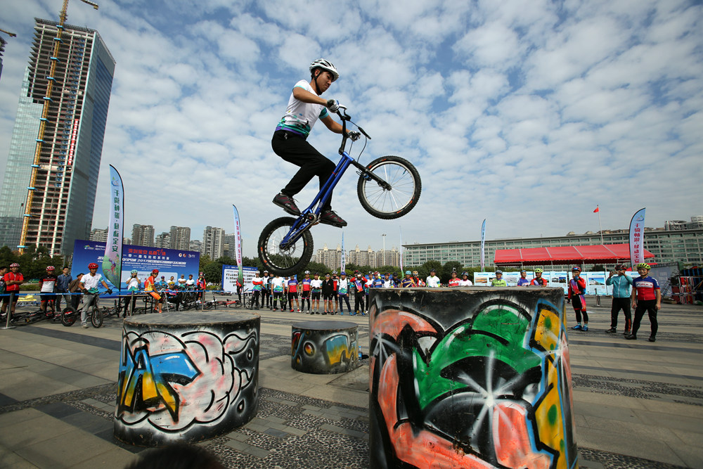 活动还为现场跑友、车友奉献了精彩的攀爬极限单车表演。另有多个俱乐部的车友参加了自行车慢骑赛和绕桩赛。