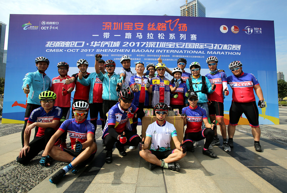 “千骑畅游,绿动宝安”2017发现宝安之美系列骑行活动暨“宝安十景”评选结果展示活动,积极配合和宣传了2017深圳宝安国际马拉松赛,此次活动选址海滨广场,与“宝马”签到同行。
